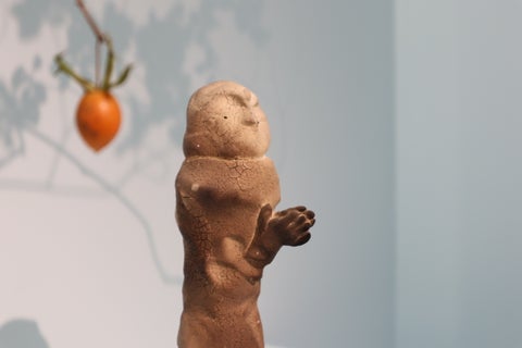 - 展示作品には初めて手掛けた仏像や野焼き技法による独特なグラデーションが特徴