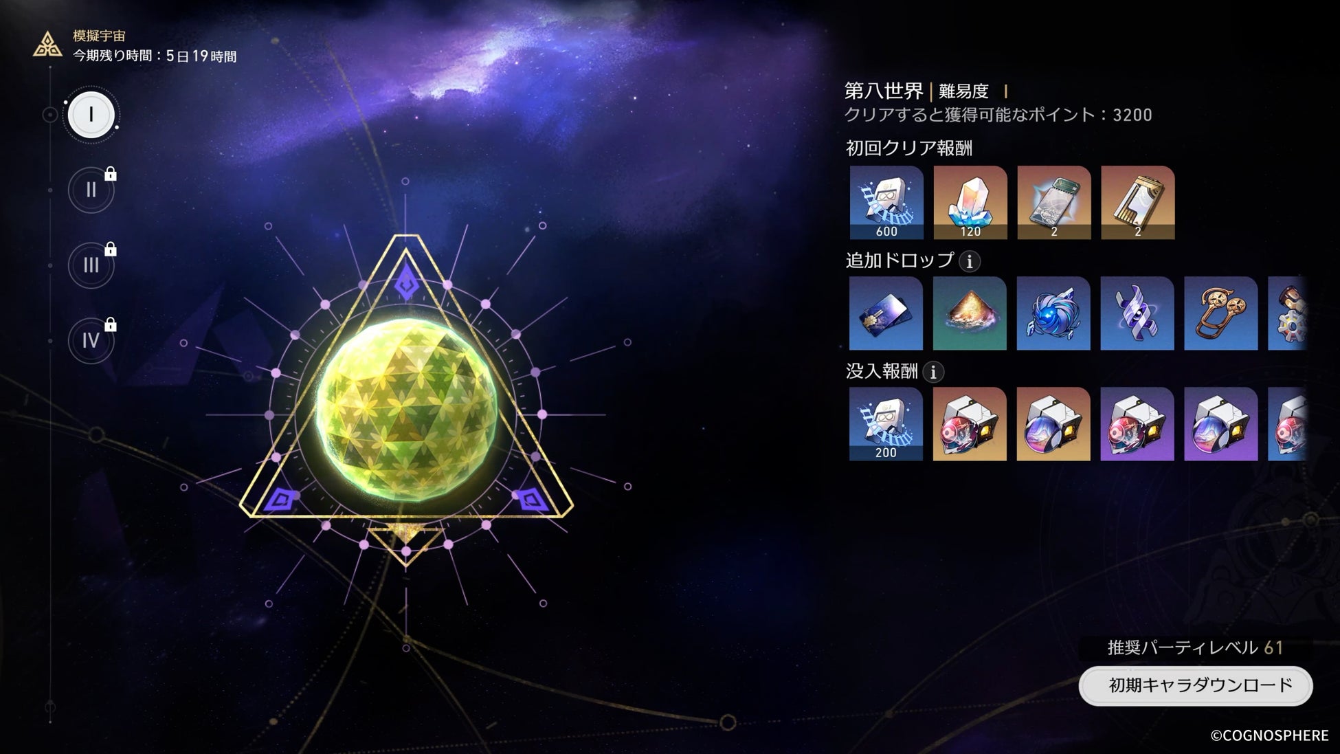 さらに、模擬宇宙に第八世界が追加され、ログインボーナスイベント「巡星の礼」も開催中です。