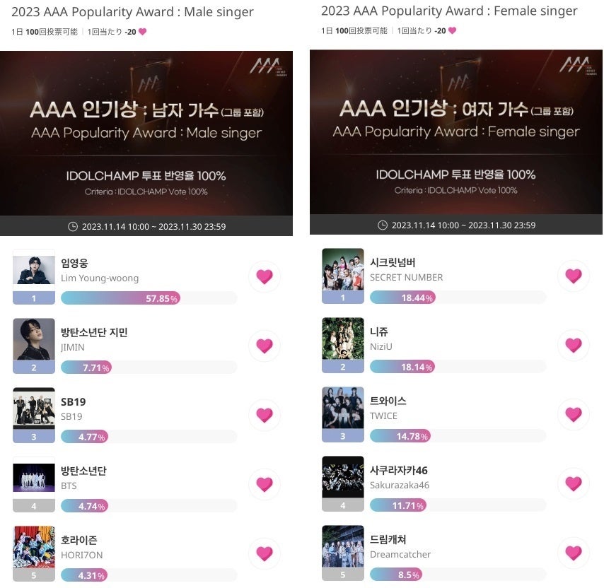 BTSやTWICEなどの人気アーティストが決戦投票候補にノミネートされ、多くのファンから期待が高まっています。