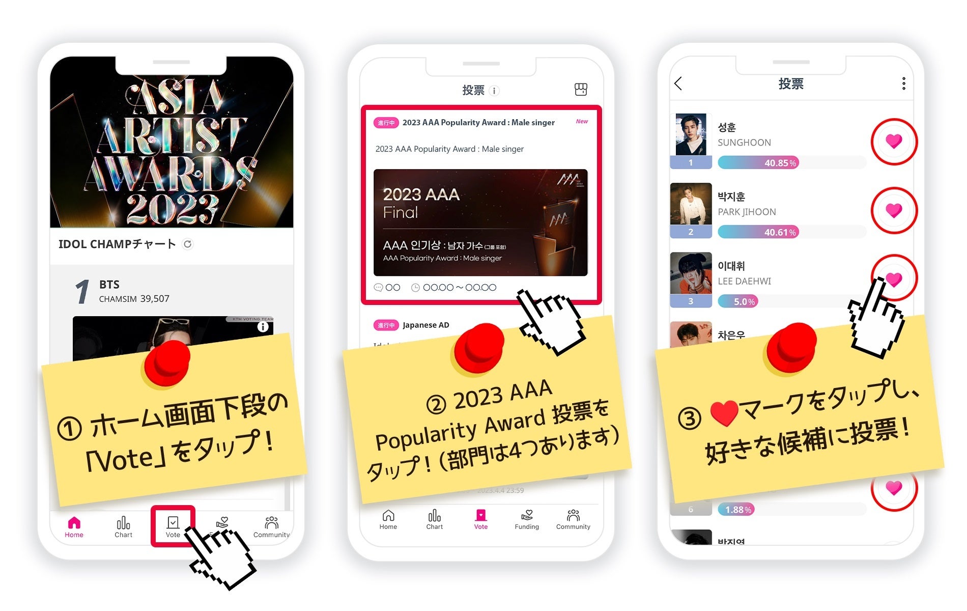 IDOLCHAMPは音楽番組「SHOW CHAMPION」のファン投票を行うアプリであり、投票結果はランキングに反映されます。
