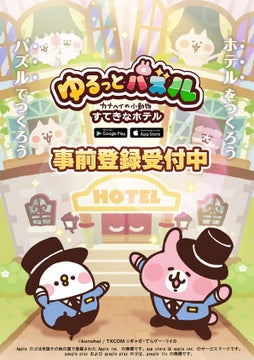 株式会社でらゲーは、Android/iOS向けの新作ゲームアプリ『ゆるっと パズル – カナヘイの小動物 すてきなホテル』の事前登録を開始します。