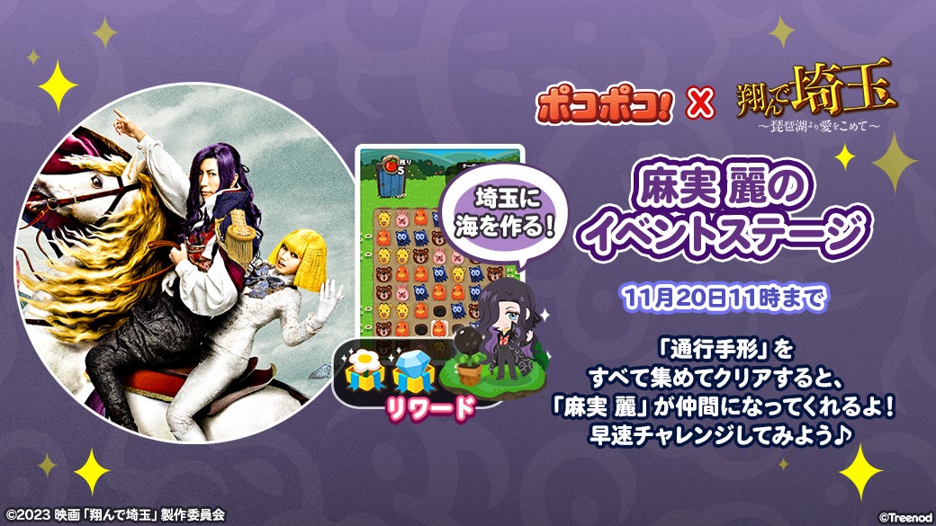 LINEヤフーは、人気の3マッチパズルゲーム「LINE ポコポコ」と映画『翔んで埼玉~琵琶湖より愛をこめて~』のコラボレーションイベントを開催します。