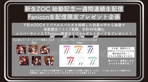 また、ZOCのメンバーが日替わりで登場し、新体制について語る生配信企画も開催中です。