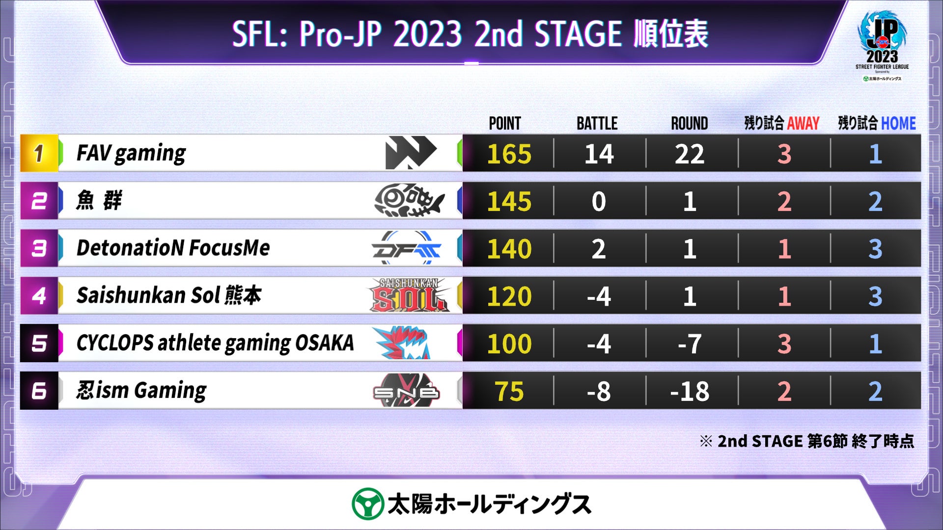 - 2nd STAGE 第6節の試合速報が掲載されている