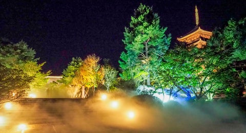 仁和寺で開催されている「雲上の国宝展 仁和寺雲海ライトアップ」が注目を集めています。