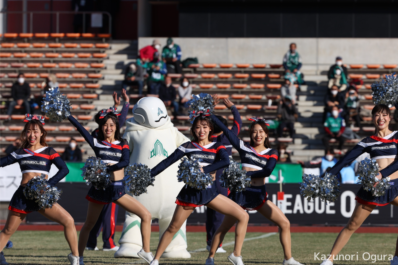 試合前場外パフォーマンスエリアおよび、オープニングとハーフタイムにはNECロケッツチアリーダーSPARKLESが登場!