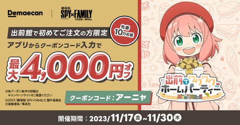 株式会社出前館は、「劇場版 SPY×FAMILY CODE: White」とのコラボキャンペーンを開催します。
