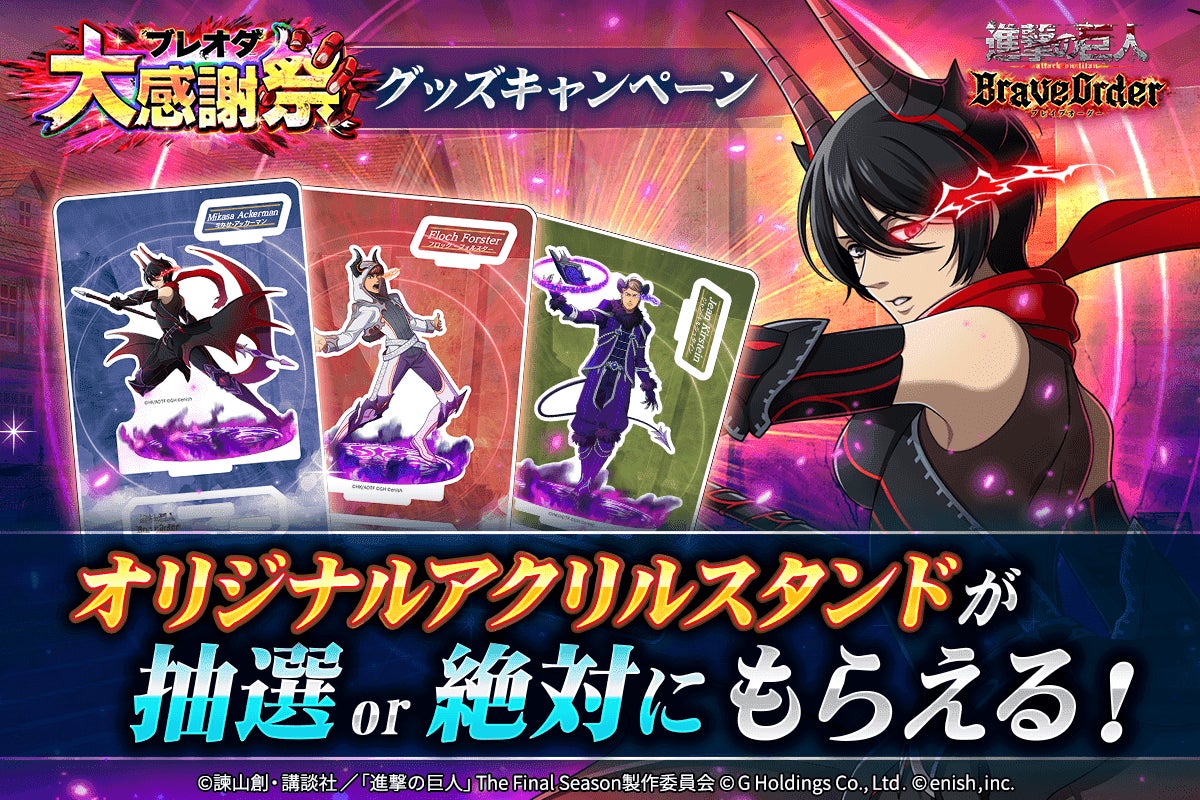 株式会社enishは、スマートフォンゲーム「進撃の巨人Brave Order」の特別キャンペーン「ブレオダ大感謝祭」を現在開催中です。
