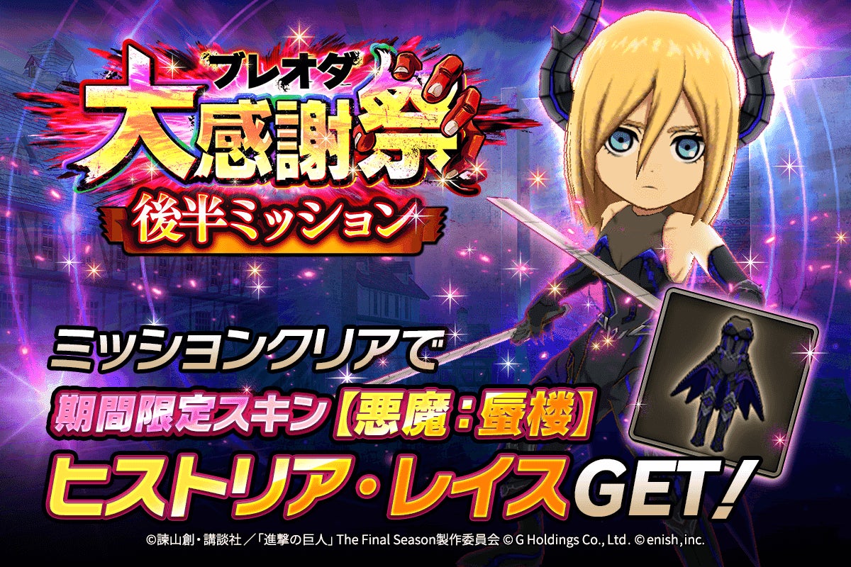 - 株式会社enishが「進撃の巨人Brave Order」の特別キャンペーン「ブレオダ大感謝祭」を開催中
