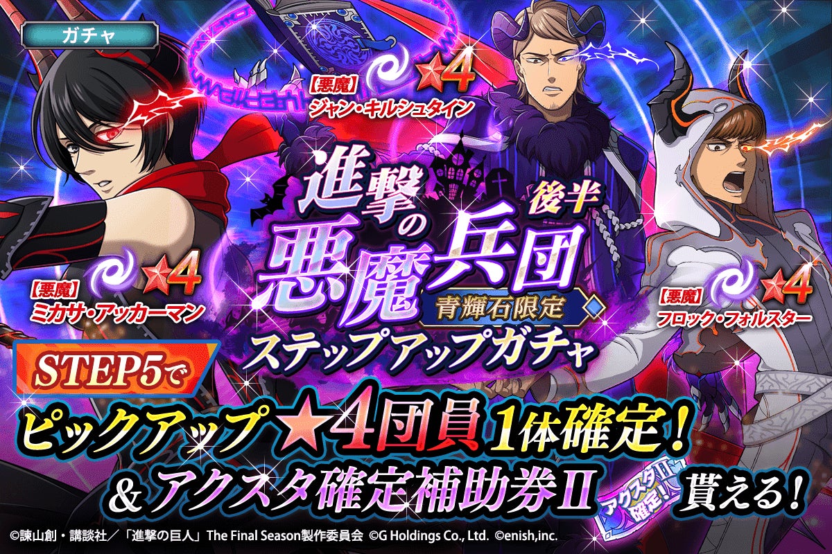 - 「進撃の悪魔兵団(後半)ガチャ」も開催中