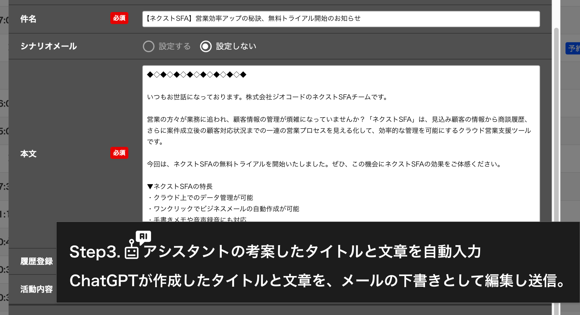 - ジオコードが「ネクストSFA」にChatGPTを活用した「メール作成機能」をリリース