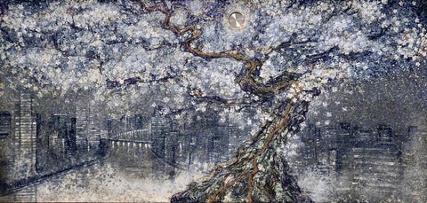- 作品には鵜飼の篝火の松明や鹿の角骨、隅田川の桜、処分される水草などが使われる