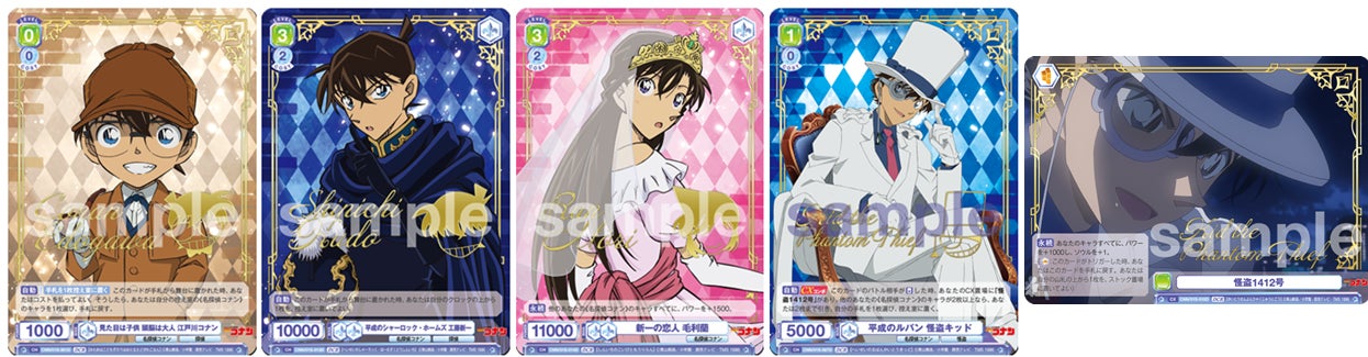 ブースターパックには江戸川コナン、灰原哀、安室透、赤井秀一、ジンの特別衣装の描き下ろしイラストカードが収録され、スタートデッキにはカード50枚の構築済デッキがセットされる。