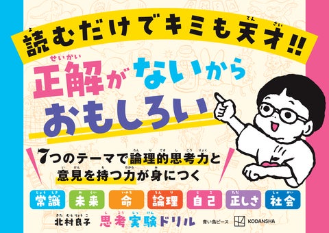 - 書籍情報:「思考実験ドリル」、著者:北村良子、イラスト:伊藤ハムスター、デザイン:吉田孝宏、発行:講談社、発売日:2023年11月13日、仕様:A5変型 128p、定価:1,650円(税込)