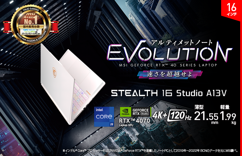 - 同社は「Stealth16StudioA13VG753JP」と「Katana15B13VFK879JP」を順次販売開始する。それぞれ薄型軽量ハイエンドゲーミングノートPCと最適な性能を備えたハイスペックゲーミングノートPCである。