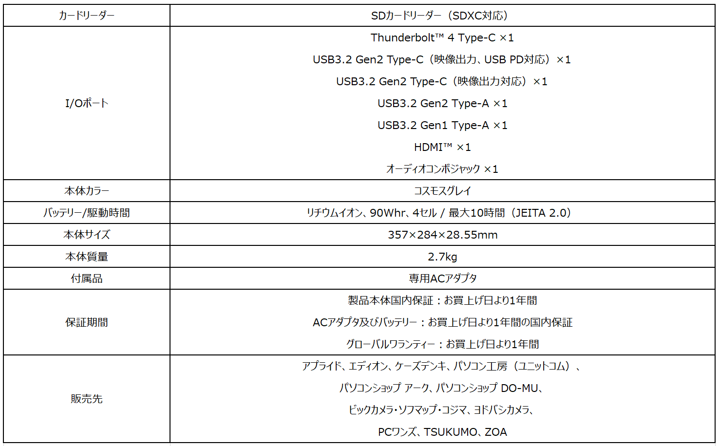 - 「VectorGP68HX12VH779JP」はプロeスポーツプレイヤー向けに「Core™ i912900HX」と「GeForce RTX™ 4080 Laptop GPU」を搭載したウルトラハイスペックゲーミングノートPC