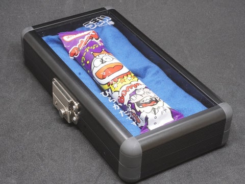 これらのケースはうまい棒専用で、アクリルとアルミニウムで作られています。