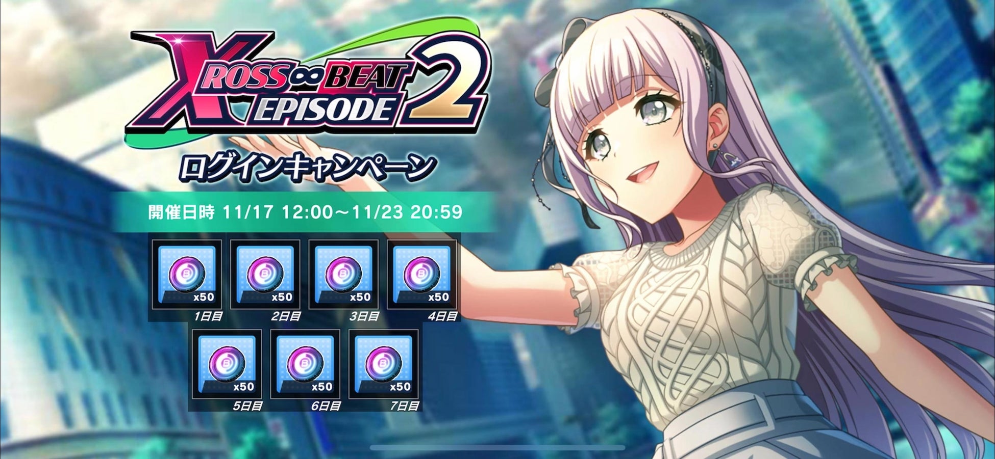 11月17日(金)12:00から11月23日(木)20:59まで、イベント「XROSS∞BEAT EPISODE2」が開催されます。