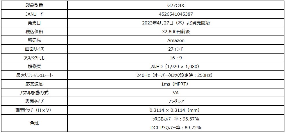 - エムエスアイコンピュータージャパンが27インチゲーミングモニター「G27C4X」を発売