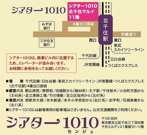 - 北千住はアクセスが便利で、観劇後には周辺の商店街でお買い物や食事も楽しめる