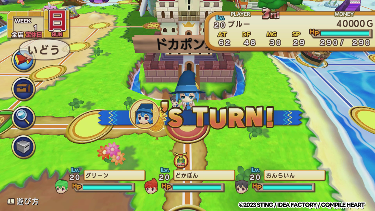 - ドカポン王国を救うためにお金を稼ぎ、他のプレイヤーに妨害を