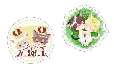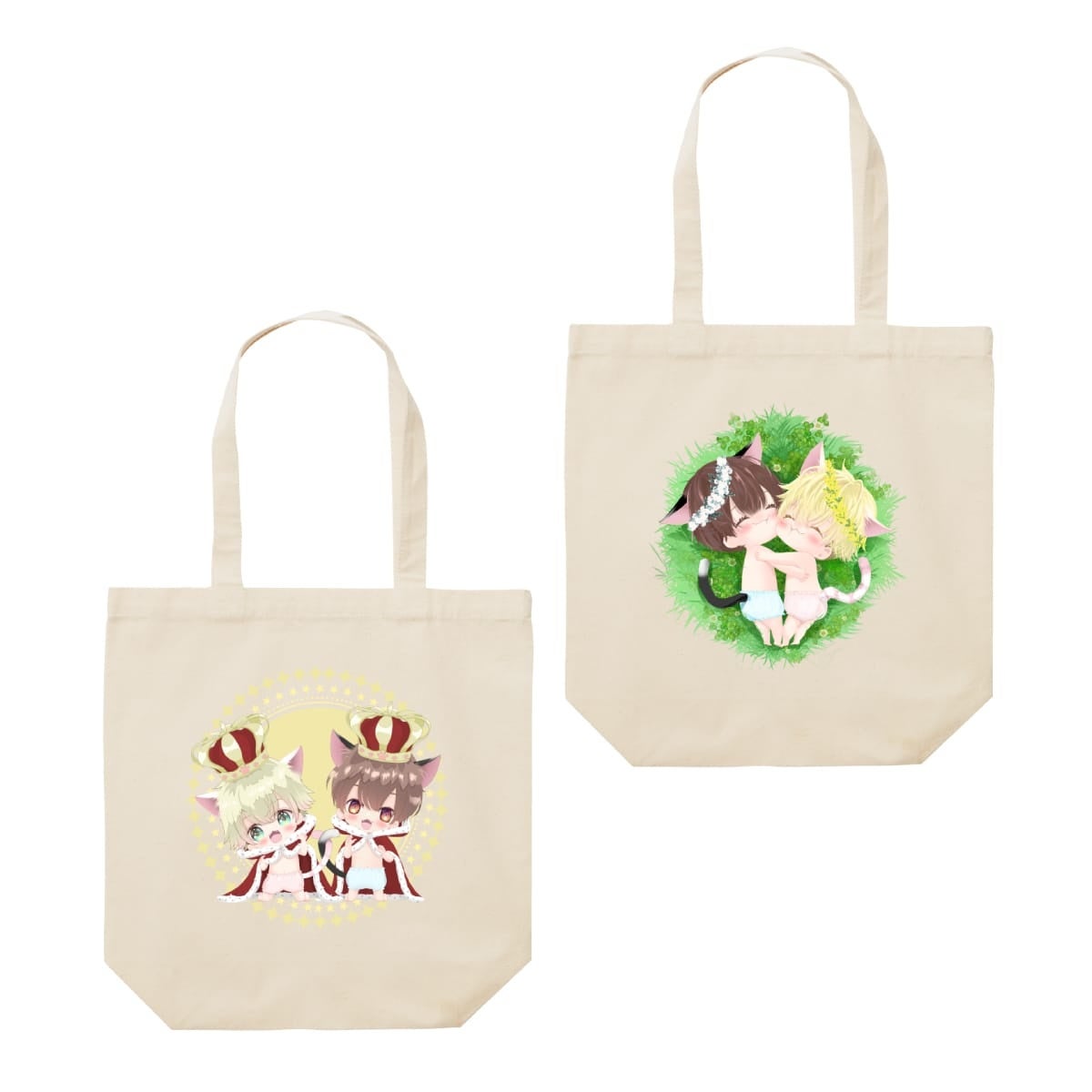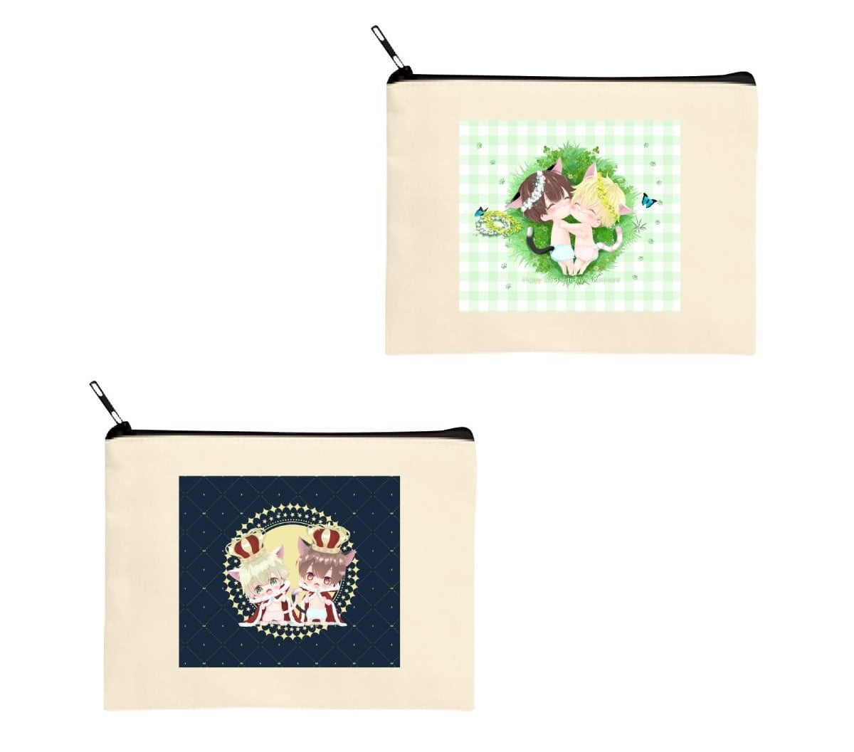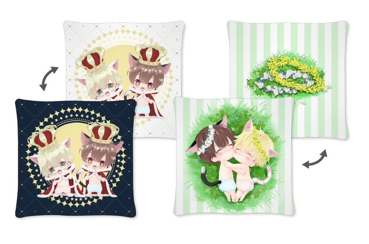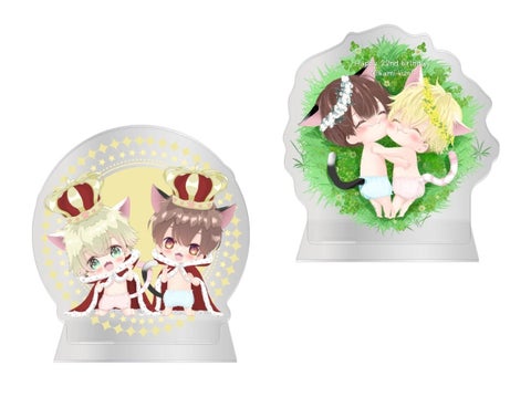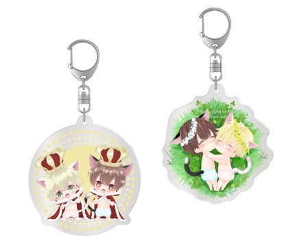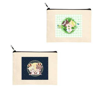 トートバッグ、アクリルキーホルダー、キャラスタンド、ポーチ、缶バッジ、ステッカー、クッション、マグカップ、学生証、複製原画など、全2種類のアイテムがあります。