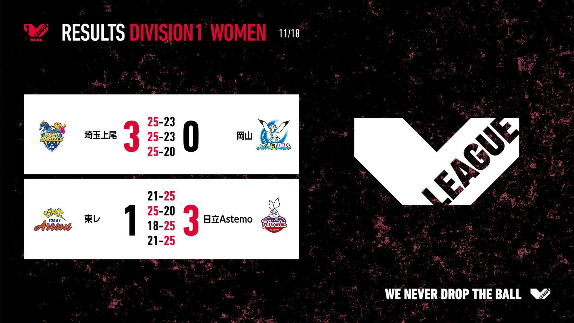 また、WD名古屋はジェイテクト戦でパナソニックの連勝を止めました。