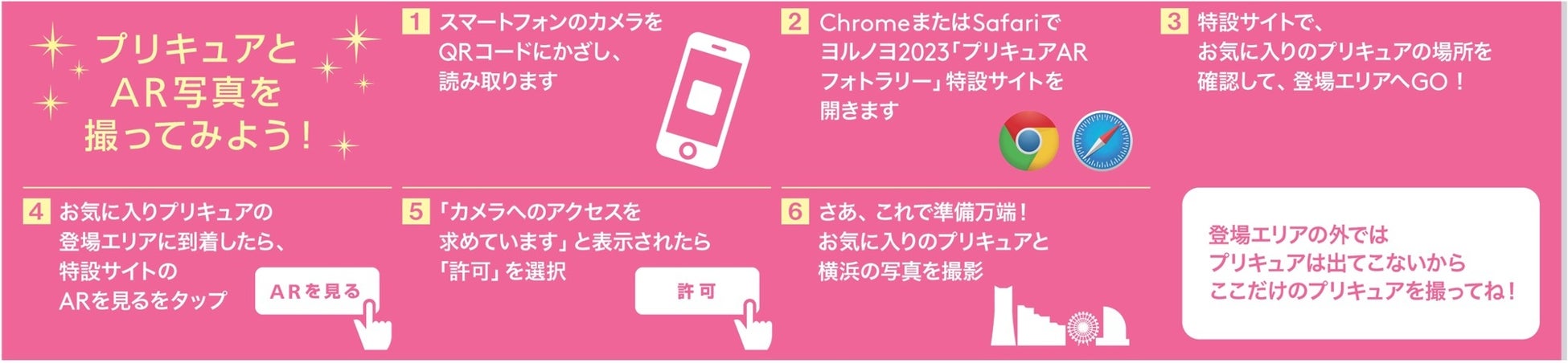 横浜で開催されるプリキュアARフォトラリーでは、20か所のスポットで様々なキャラクターが登場します。