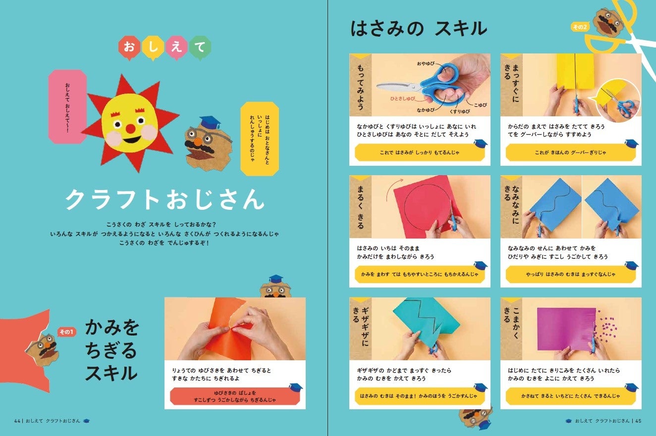 基本のスキルも丁寧に紹介されており、はさみやテープ、牛乳パックの使い方などが学べます。