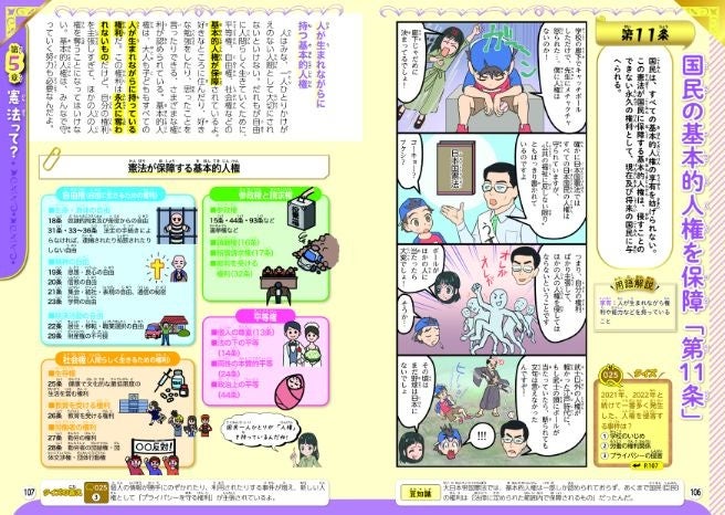 また、『政治と憲法』では政治や憲法についてマンガとクイズでわかりやすく解説しています。