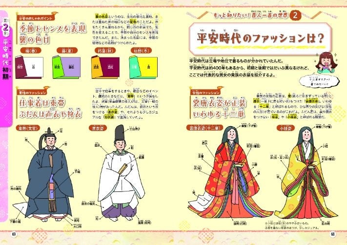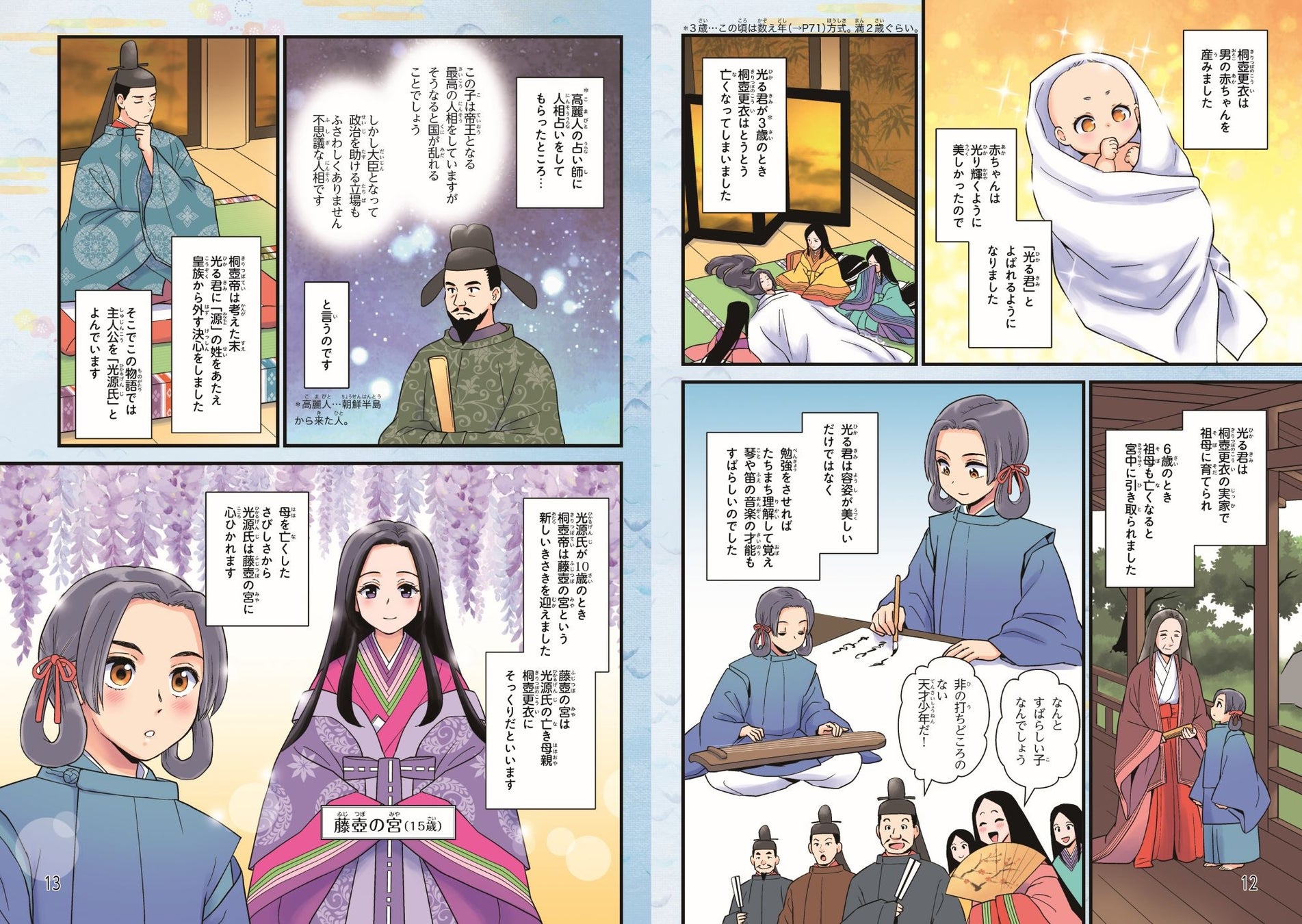 『百人一首』では和歌のストーリーや背景をマンガと解説で紹介し、『源氏物語』では全54帖のストーリーを楽しく読むことができます。