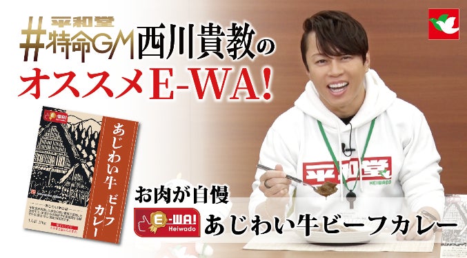 株式会社平和堂(滋賀県彦根市、代表取締役社⾧執行役員:平松正嗣、以下「平和堂」)は、3月23日(木)、平和堂公式YouTubeにて「平和堂 特命GM 西川貴教のオススメE-WA!」シリーズの第1弾「あじわい牛ビーフカレー」編の動画を公開しましたのでお知らせいたします。