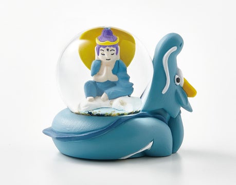 このスノードームは仏教の守り本尊として、厄除けや開運の力を持つ普賢菩薩さまを表現しています。