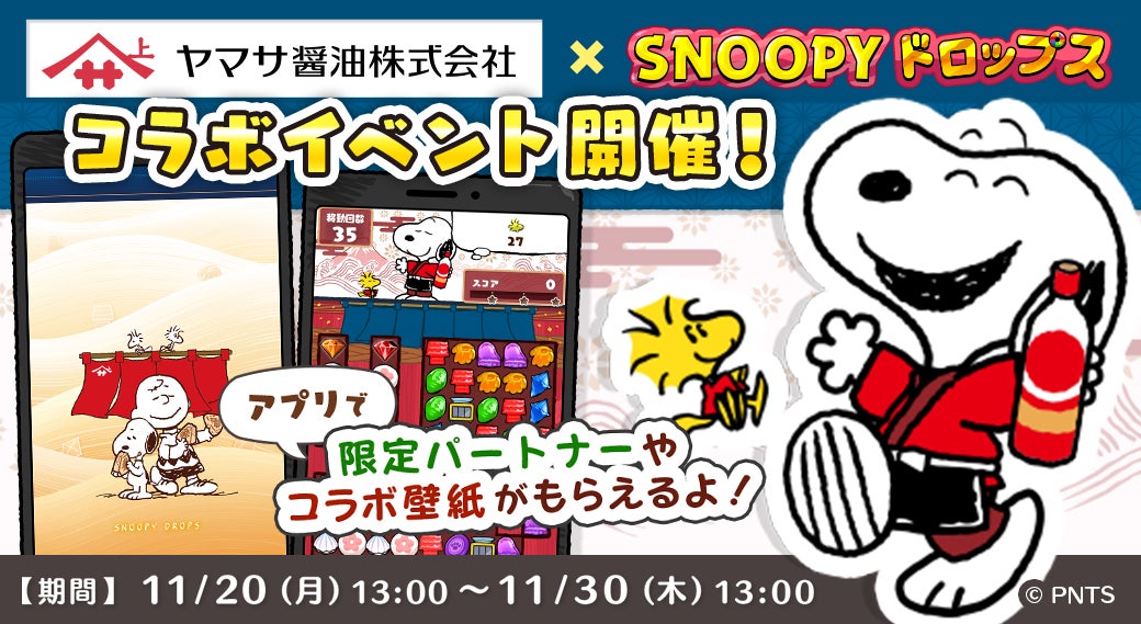- 爽快パズルゲーム『スヌーピードロップス』が「ヤマサ醤油」とのスペシャルコラボイベントを開催