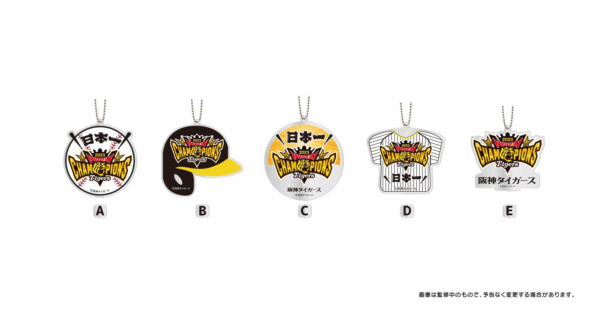 - 商品は全5種類の阪神タイガースの日本一記念ロゴが印刷されたアクリルキーホルダー