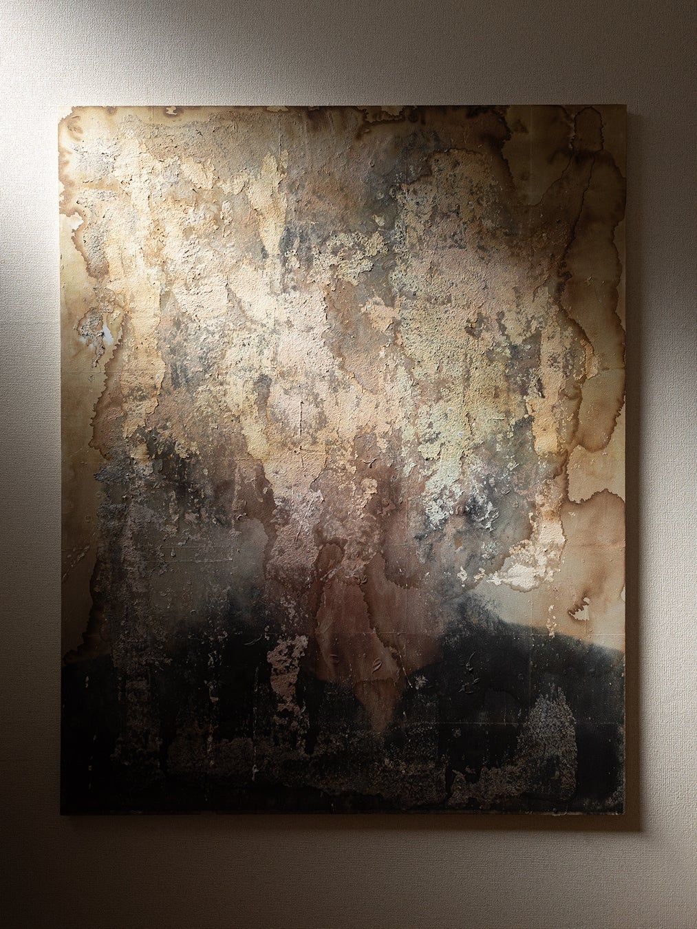 彼の最新の展示では、特殊詐欺をテーマにした作品を展示し、社会構造や個々人に焦点を当てています。