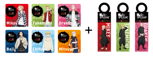 コースター絵柄:佐野万次郎、花垣武道、龍宮寺堅、場地圭介、松野千冬、三ツ谷隆(全6種)