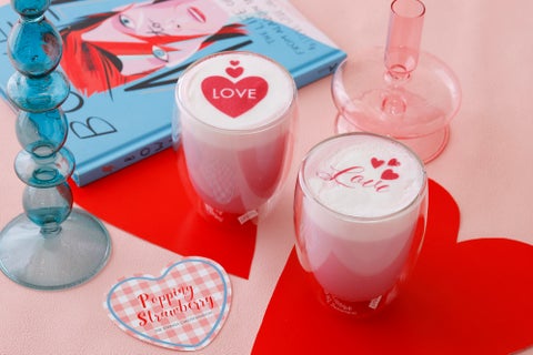 キュートなラテアートが施されたルビーチョコレートラテもオプションで楽しめます。