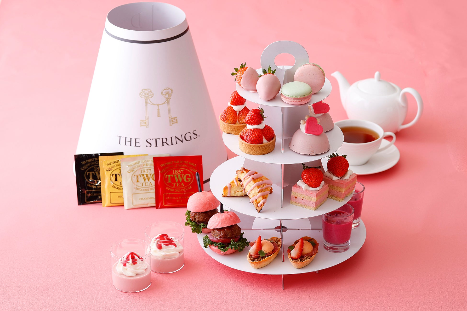 ミレニアムピンクの可愛らしい装いで、写真映えするティータイムをお楽しみいただけます。