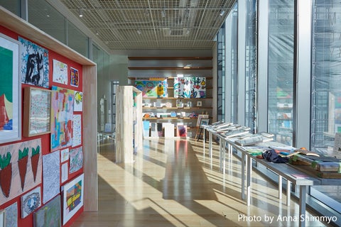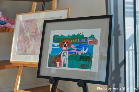 展示されている作品はユニークでカラフルなアート作品であり、チャレンジドの個性や能力を活かした商品開発も行われています。
