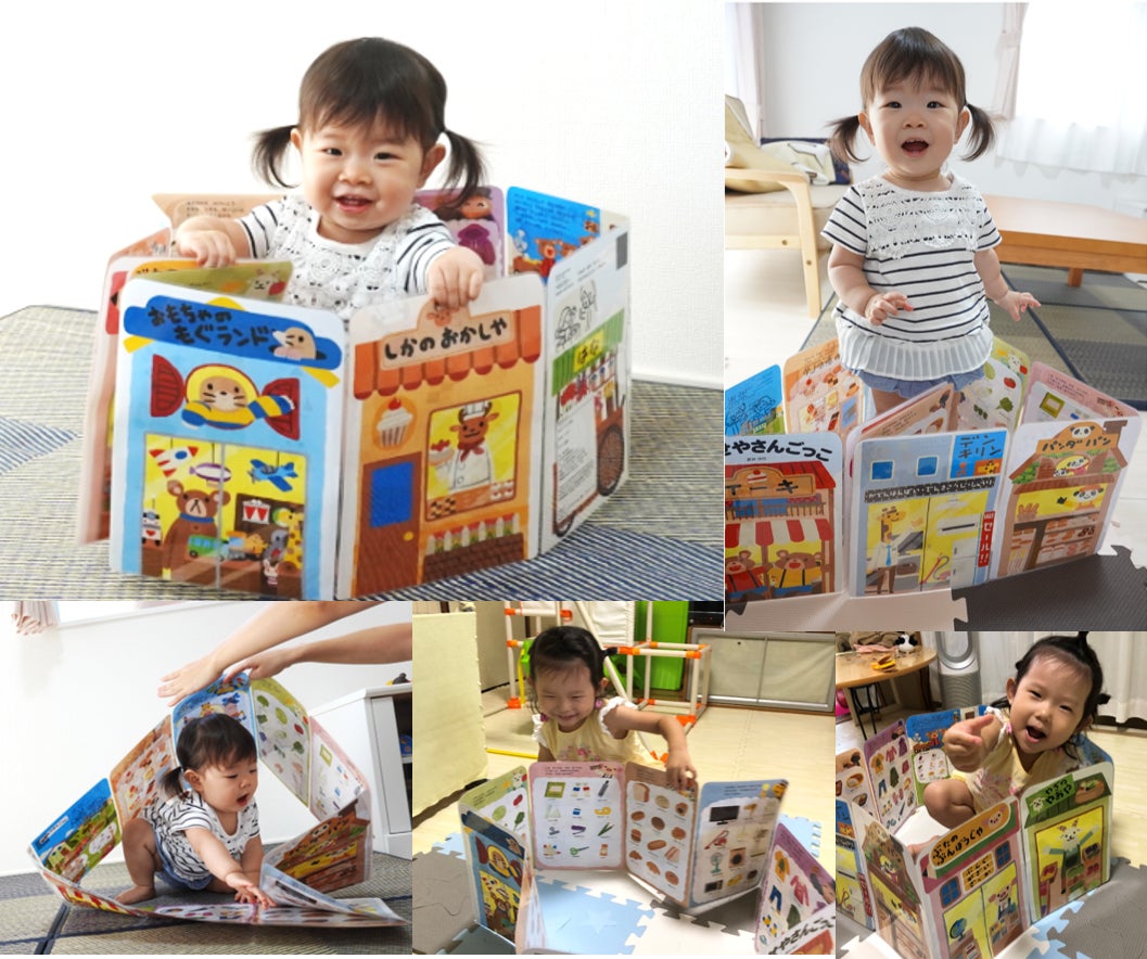 この絵本は全ページがつながっており、物語を楽しんだ後に絵本の中で遊ぶことができます。