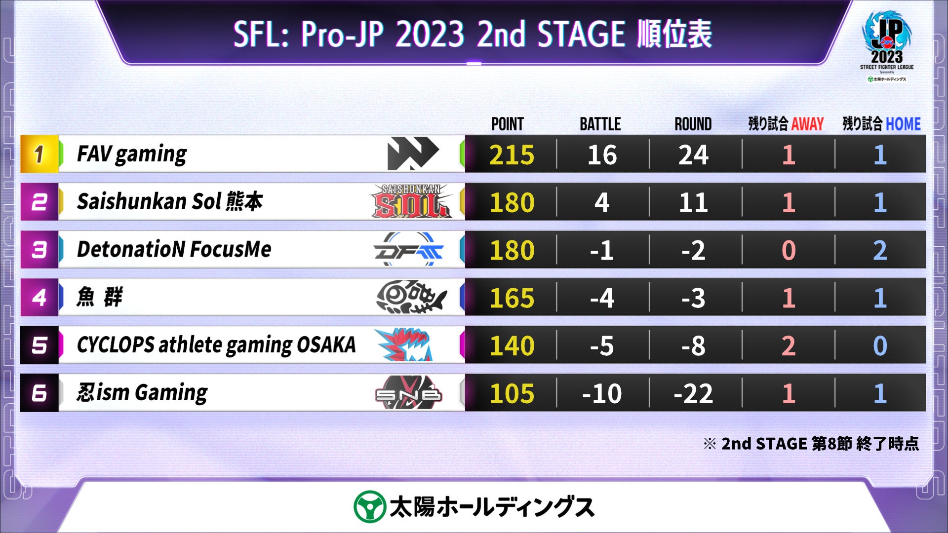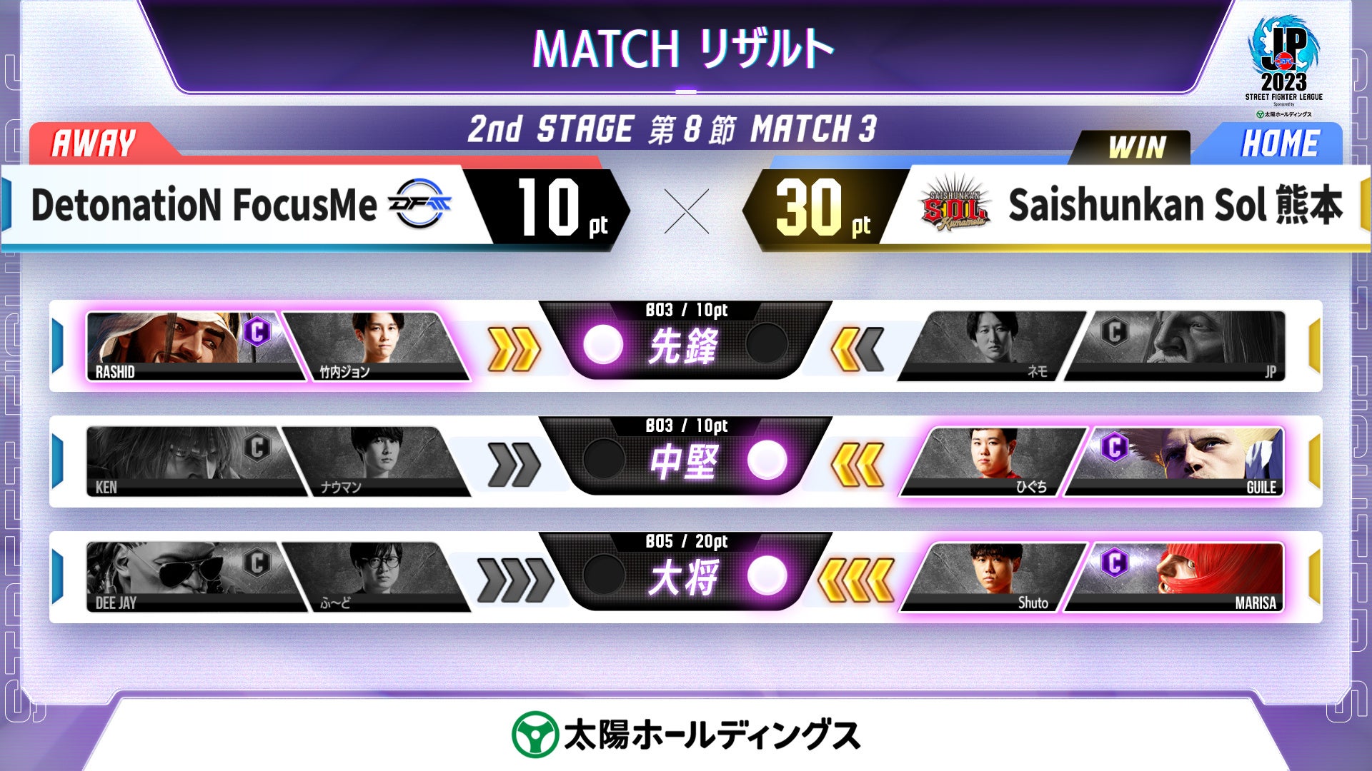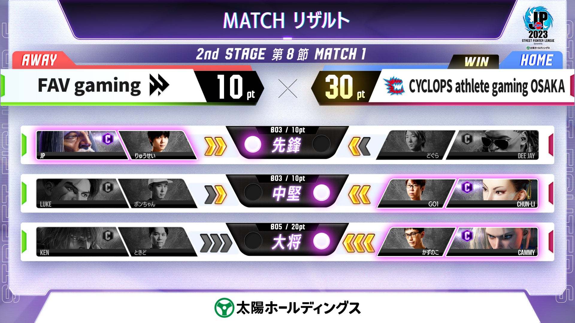 - 「ストリートファイターリーグ: ProJP 2023」2nd STAGE 第8節の試合速報