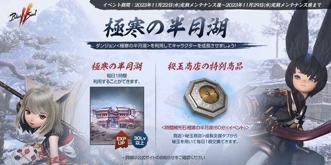 また、投票イベント「みんなで選ぼう!伝説衣装」やイベントダンジョン「極寒の半月湖」も開催されます。