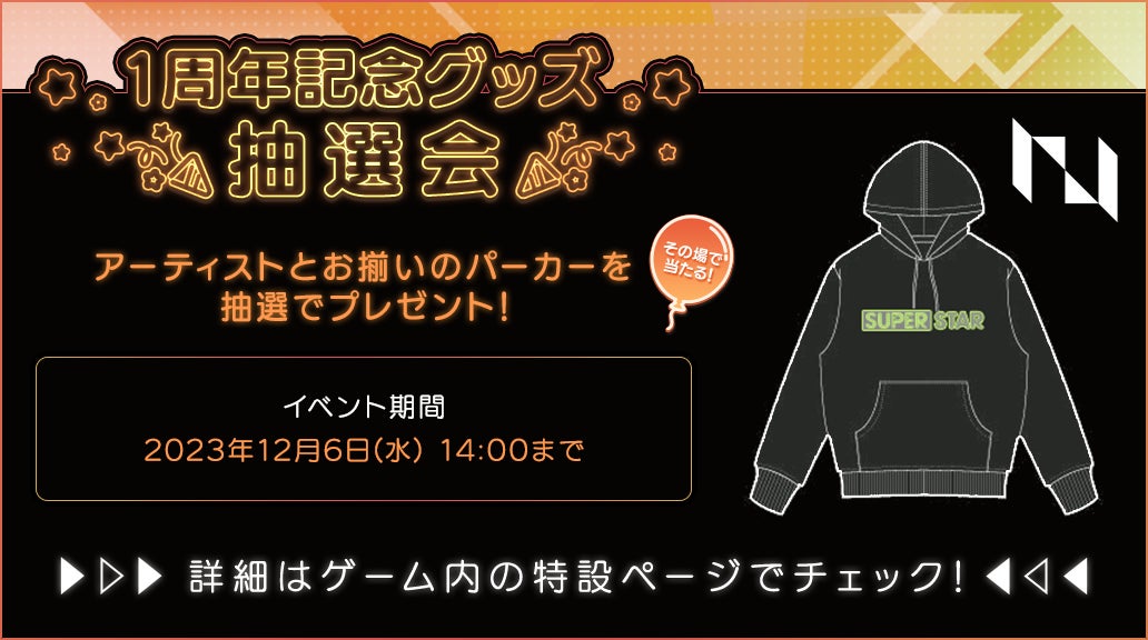 イベントでは、オリジナルグッズが手に入る1周年グッズ抽選会が行われます。