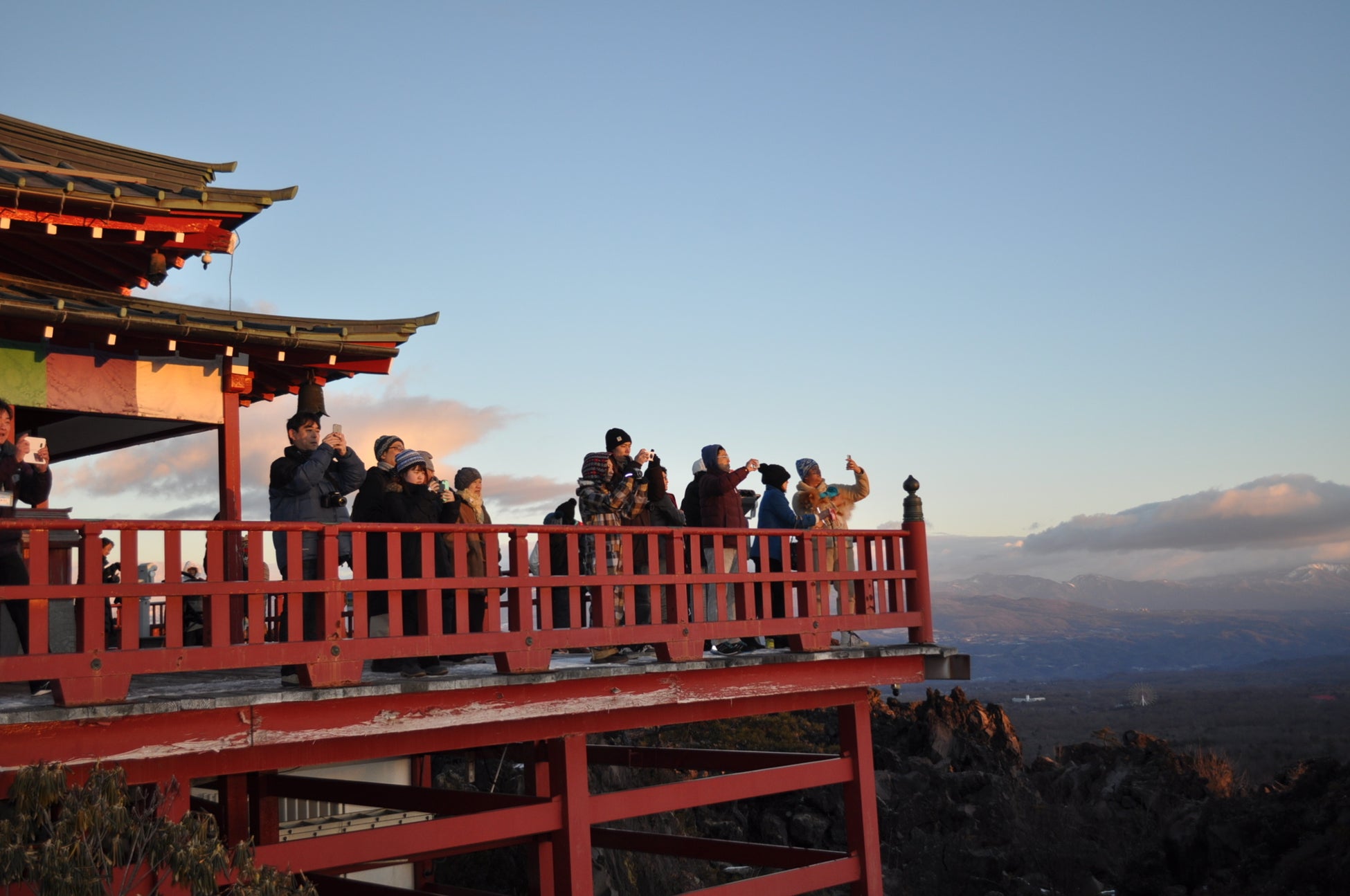元日イベントでは、浅間山観音堂の舞台から初日の出を拝むことができます。