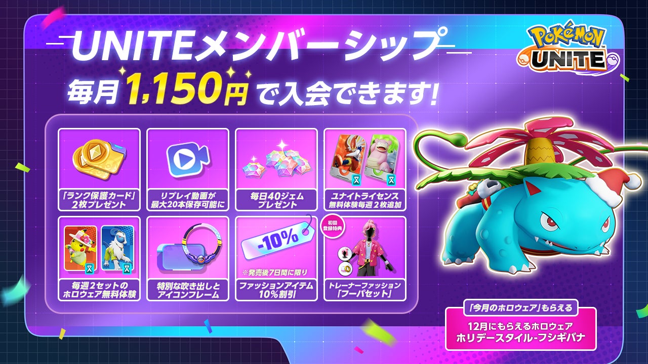 - UNITEメンバーシップ特典は「ホリデースタイルフシギバナ」