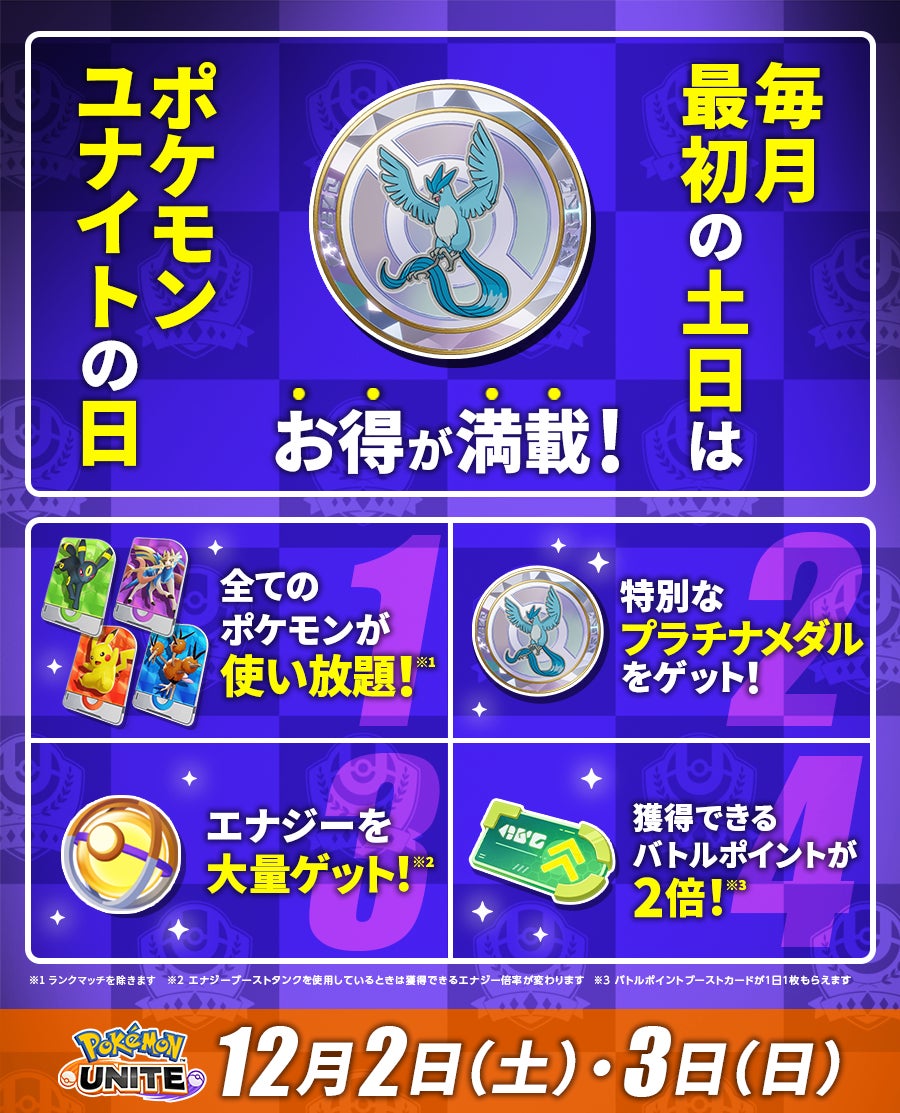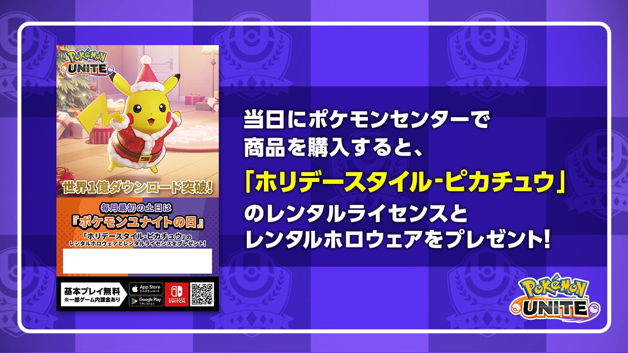 また、12月の「ポケモンユナイトの日」にはポケモンセンターでお買い物をすると特典がもらえます。