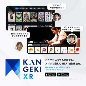 彼が開発した観劇専門オンライン配信アプリ「KANGEKI XR」も紹介されています。