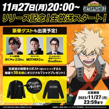 2023年11月27日(月)20:00から、おにやo-228さん、MOTHER3さん、OooDaさんをゲストに迎えた生放送が決定しました!一緒にゲームをプレイできるかもしれませんので、事前に本作をダウンロードして、ぜひご視聴ください!また、生放送を記念してX(Twitter)キャンペーンも実施中です。