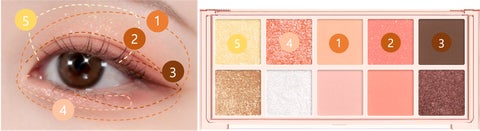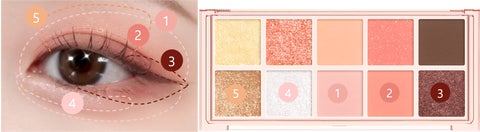 - 締め色、中間色、ベースカラー、グリッターが一目でわかるパレットで、簡単にアイメイクが完成する
